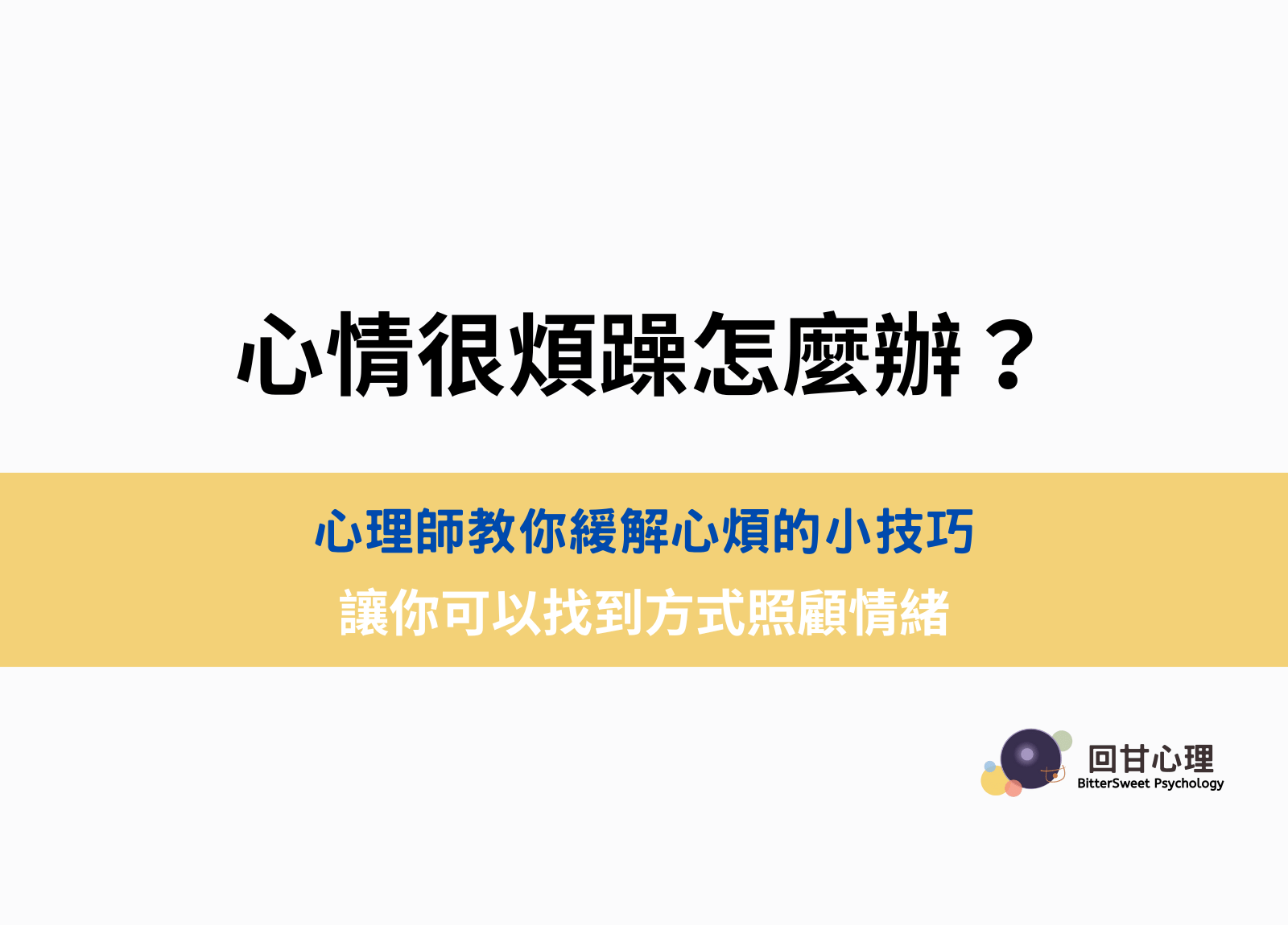 通常煩躁的情緒出現時,往往我們可能正處在過度壓力的當下,或是雖然當下是沒有壓力的,但過去累積的壓力仍需要時間消化。